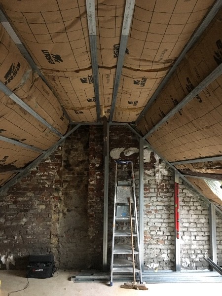 Aménagement d’une chambre dans un grenier,isolation,plâtrerie,peinture réalisé par HAINAUT SERVICES DECO