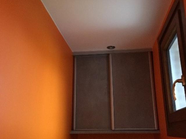 Réalisation armoire sur mesure,partie supérieure toile de verre lisse + peinture,partie inférieure dalle pvc finition aluminium