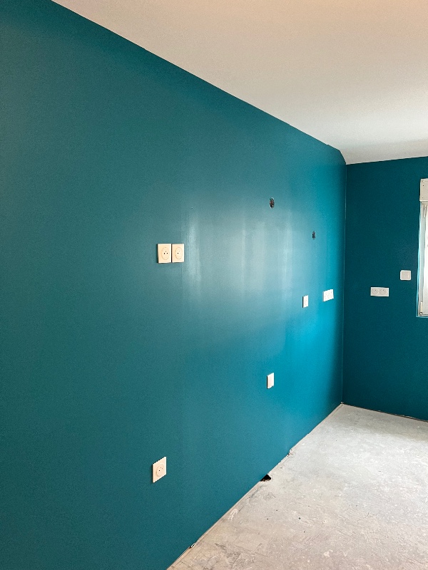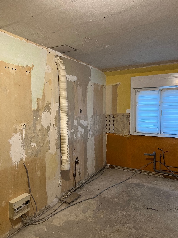 Comme prévu nous avons mis en conformité l’implantation électrique avec le plan technique du cuisiniste, nous avons réalisé l’isolation complète des murs, la plâtreries ainsi que la peinture décorative